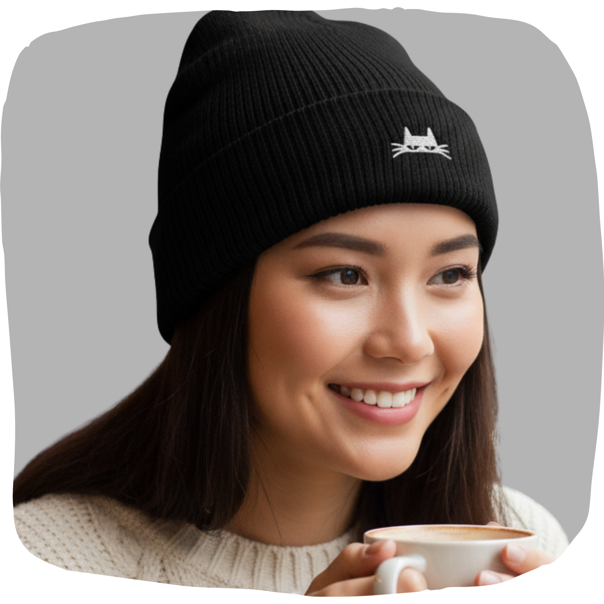 This toque features an embroidered print of a cute cat that catches the eye without being over the top—just the right amount of attitude. Ideal for city strolls, coffee with friends, or chilly mornings. Its minimalist, urban style is perfect for our winters.