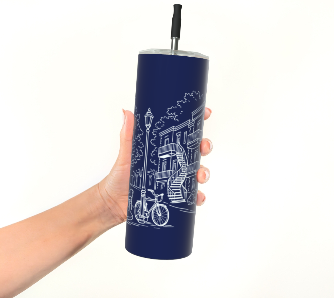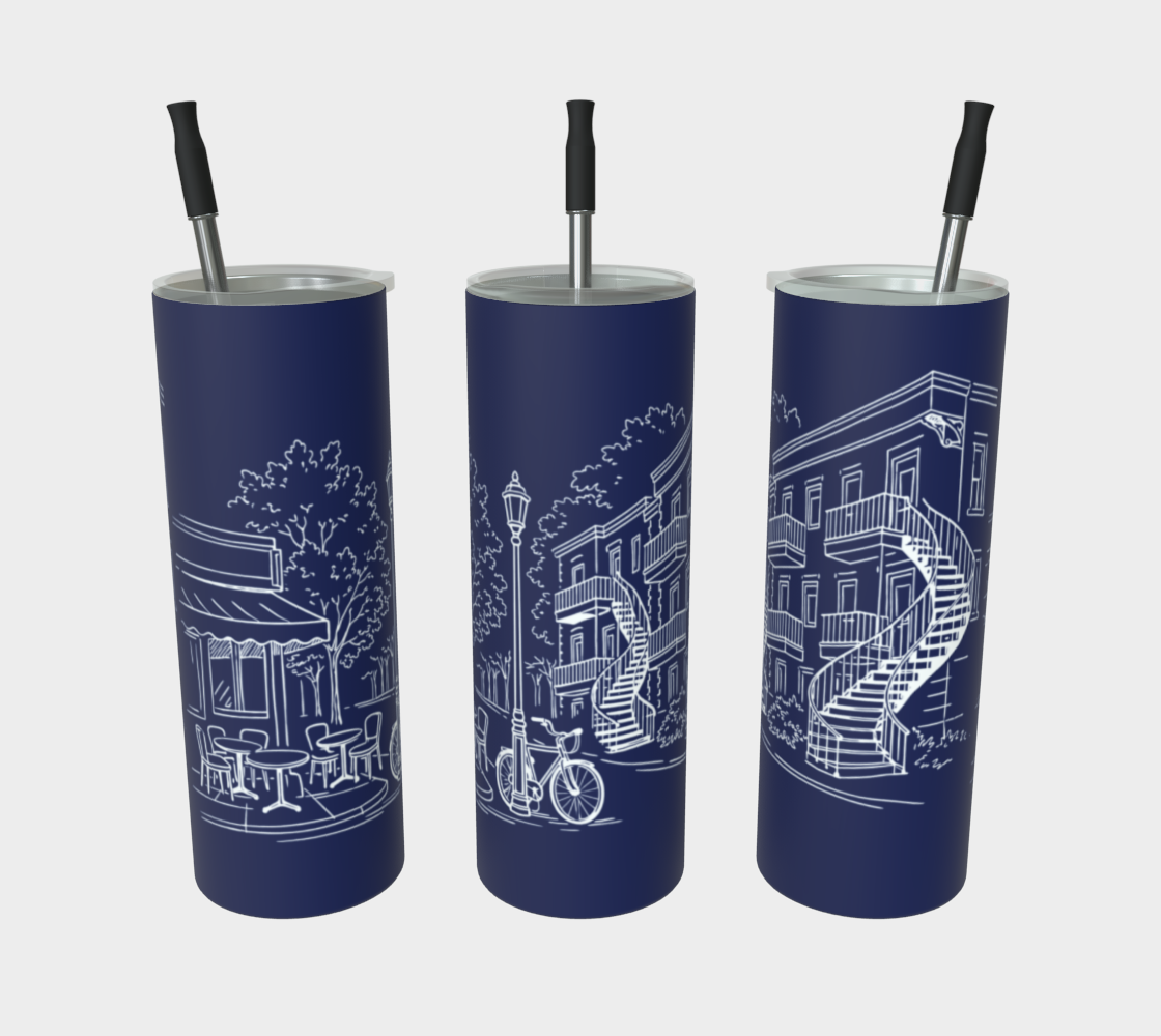 Transportez un morceau de l'architecture emblématique du Plateau partout avec vous. Ce gobelet arbore une illustration minimaliste mettant en scène les célèbres escaliers en colimaçon du quartier Plateau Mont-Royal à Montréal. C’est l’accessoire parfait pour les amoureux de la métropole qui souhaitent allier style et durabilité.