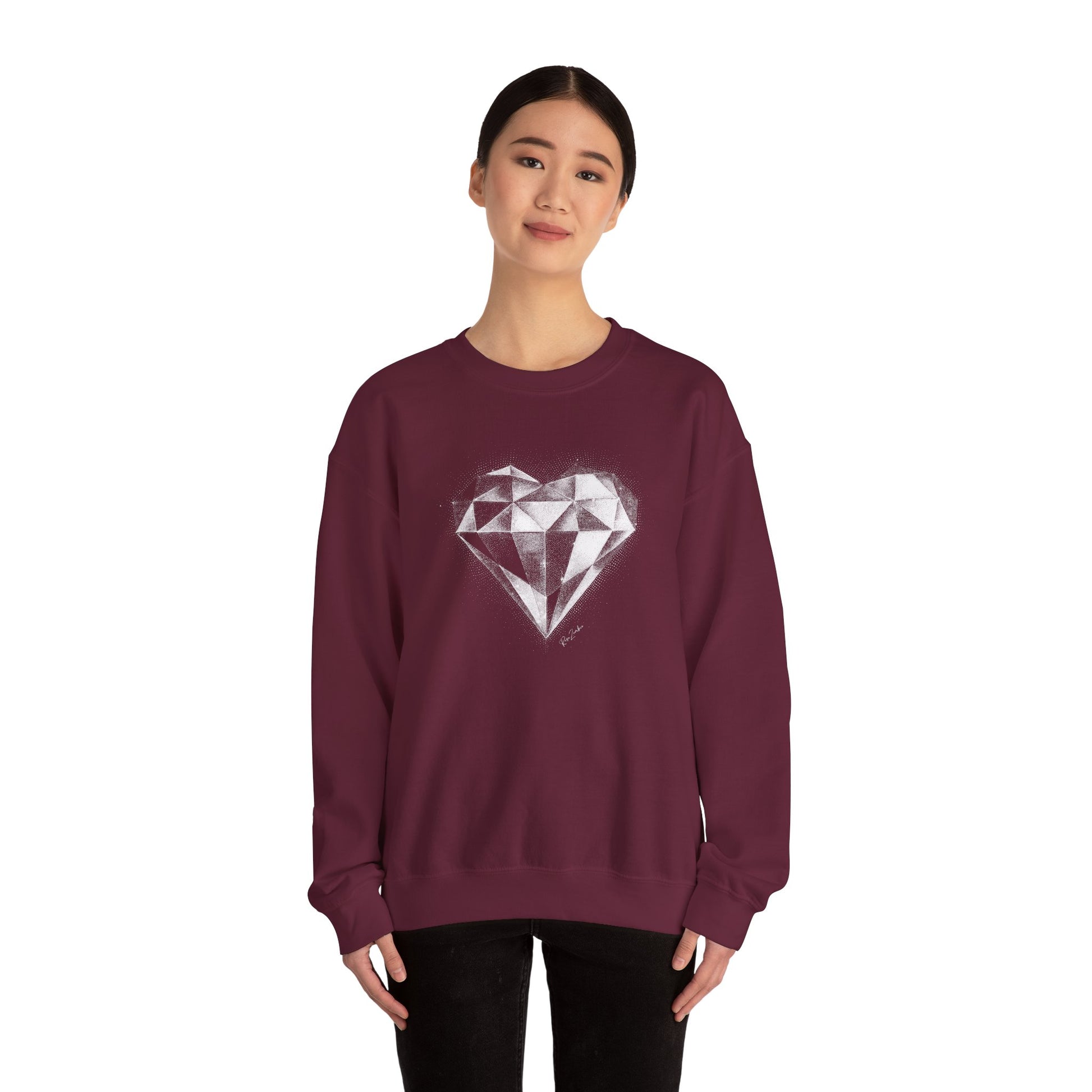 You'll love this sweater with its minimalist and striking design! It features a stunning diamond-shaped heart illustration with geometric highlights, printed in white on a black background. A strong contrast that adds an artistic and contemporary touch to your outfits.