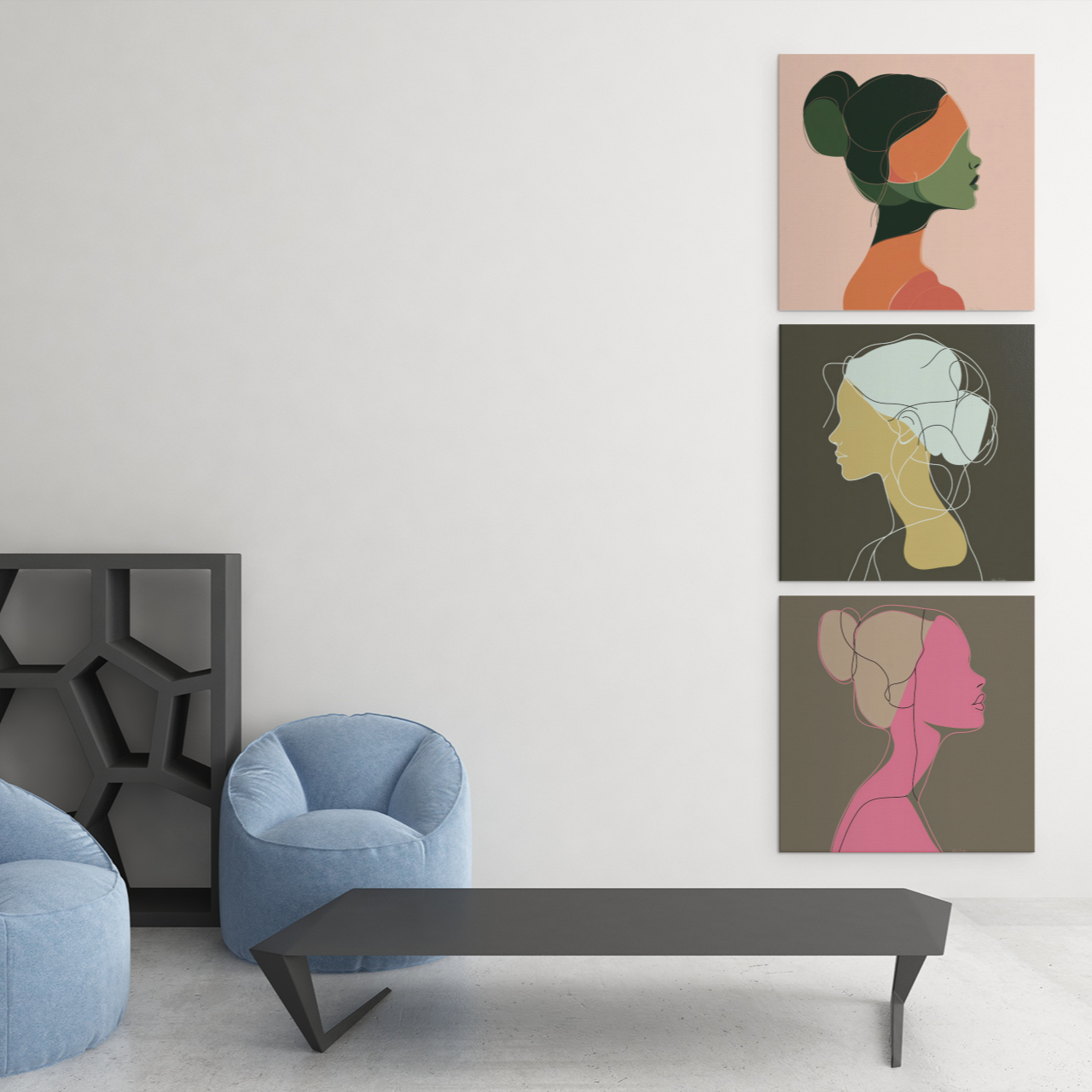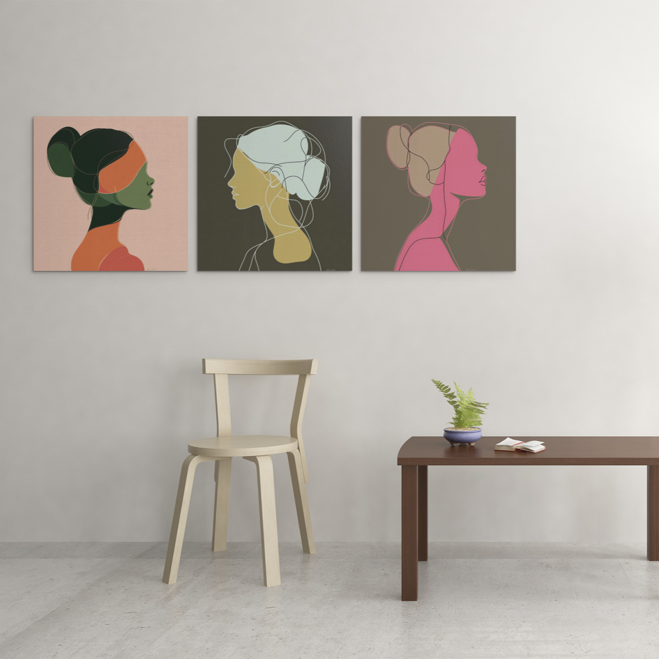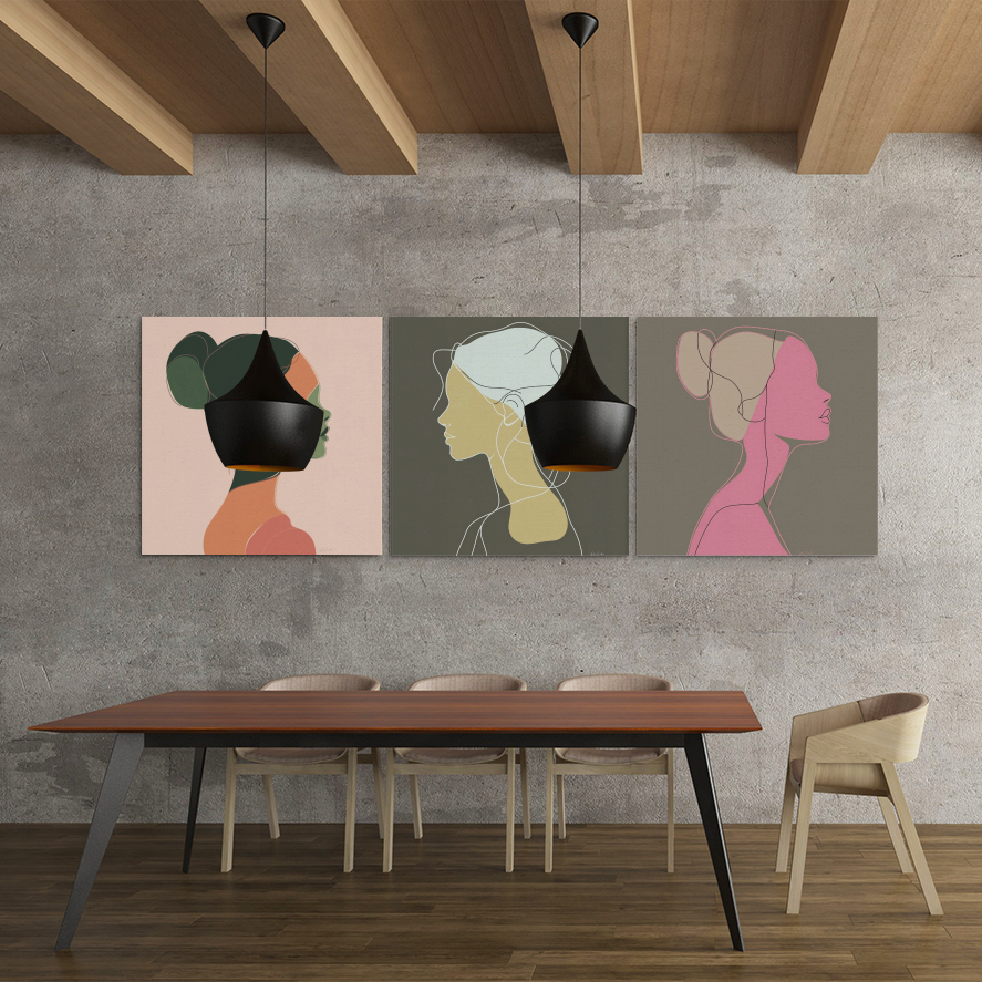 Embellece tu decoración con este elegante póster de líneas que representa el perfil de una mujer. Creado por un diseñador de Montreal, este póster único es único y no lo encontrarás en ningún otro lugar.
