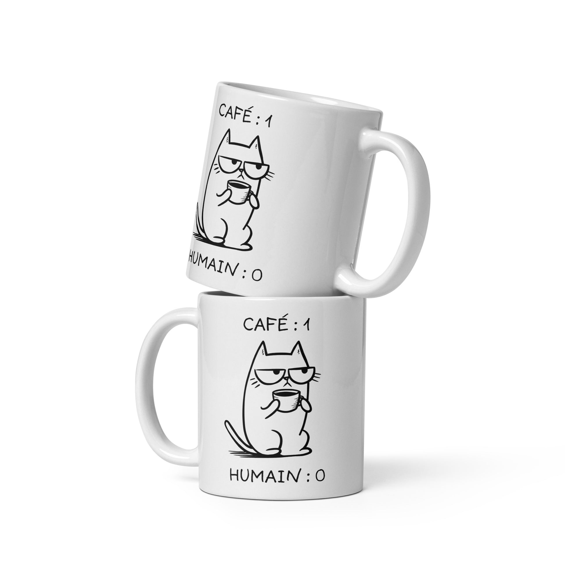 On connaît tous ce moment où seul le café gagne la partie. Cette tasse affiche avec ironie le score final de votre réveil: "CAFÉ : 1 | HUMAIN : 0". L'illustration met en scène un chat à l'air aussi blasé que déterminé, serrant sa tasse pour affronter le monde. C'est l'accessoire indispensable pour signaler poliment à votre entourage que la conversation ne pourra débuter qu'après la dernière gorgée.