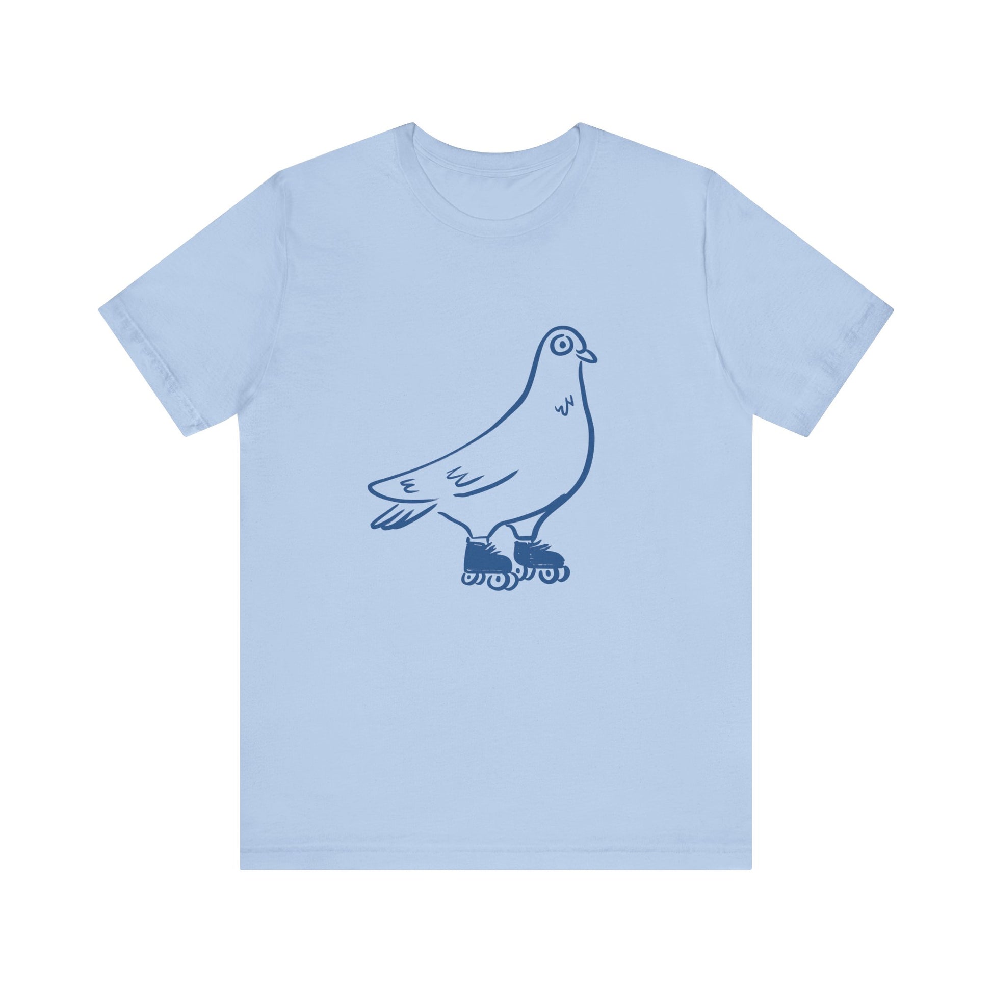 Affirmez votre style avec une touche d’humour décalé! Ce t-shirt en coton éthique met en vedette un pigeon pas comme les autres… perché sur des patins à roulettes. Une illustration minimaliste et ludique qui ne passe pas inaperçue.