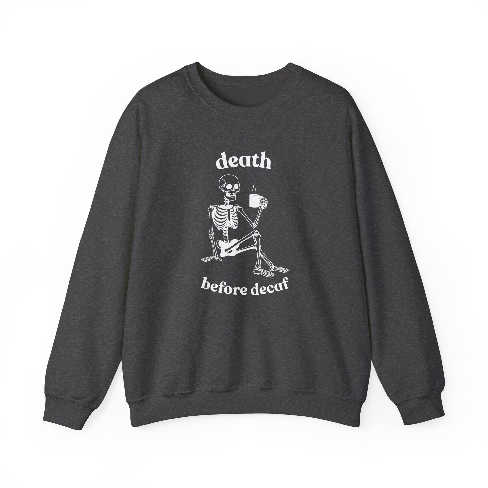 Un pull confortable et douillet représentant un squelette tenant une tasse de café. Ce vêtement amusant et décontracté qui ajoute de la personnalité à n'importe quelle tenue.