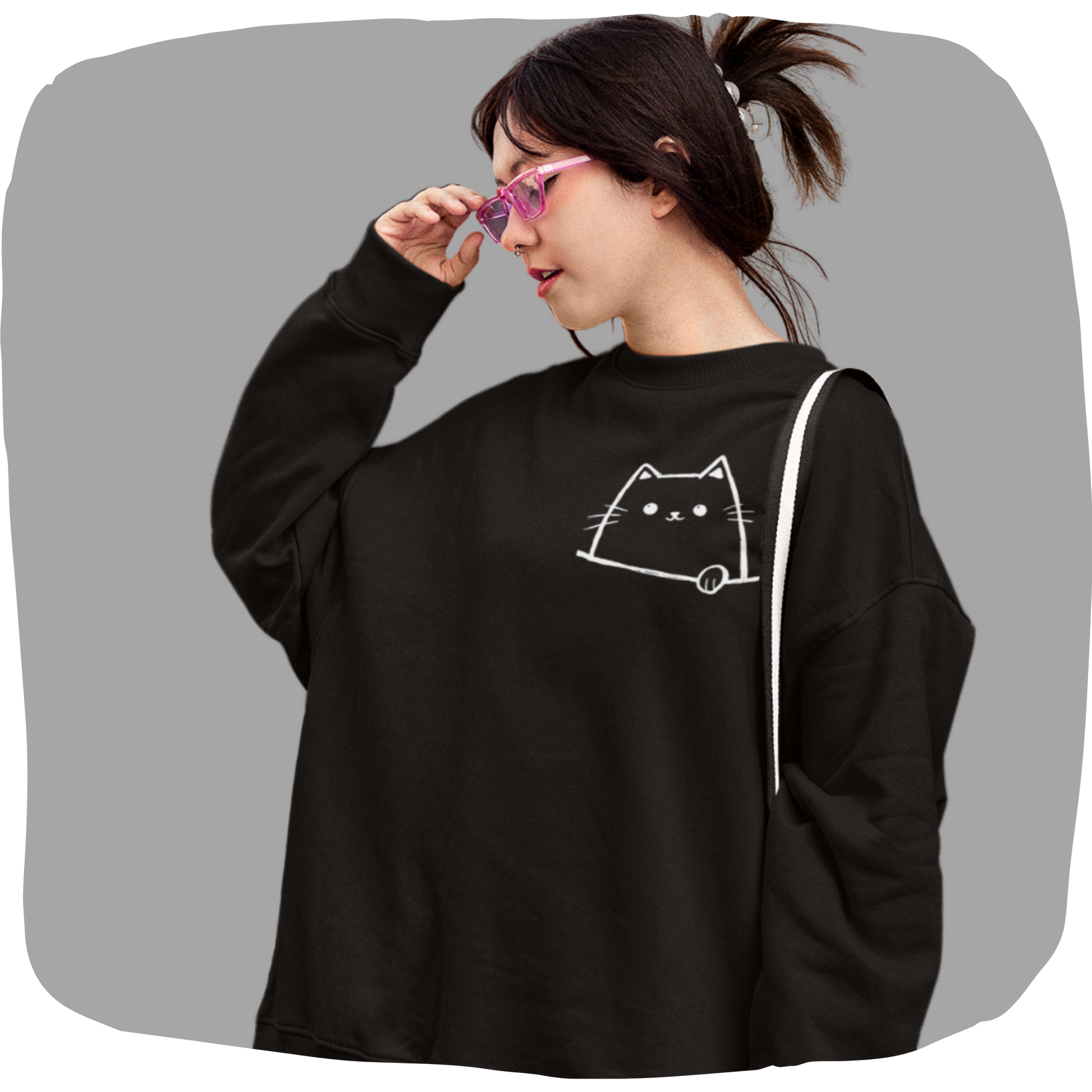 Pull surdimensionné en coton bio – Motif de chat minimaliste